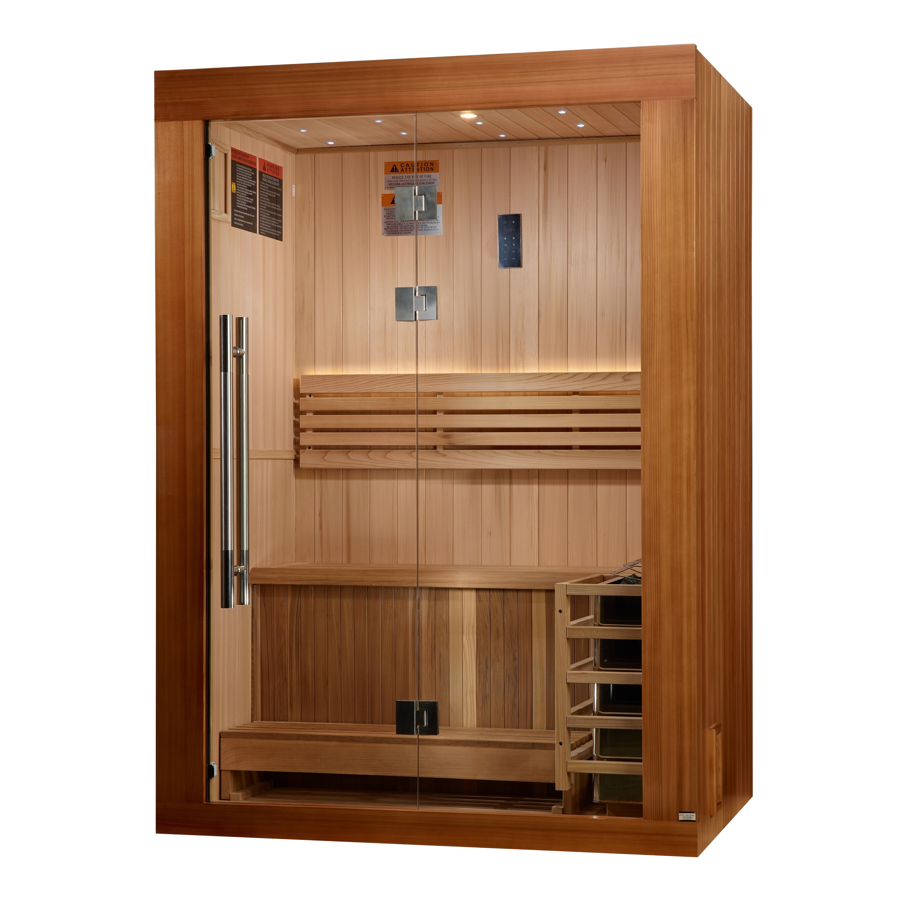 Classic steam in a compact 2–3 person design. Premium Clear Cedar holds heat efficiently, with chromotherapy lighting and Bluetooth audio for a relaxing, modern experience.